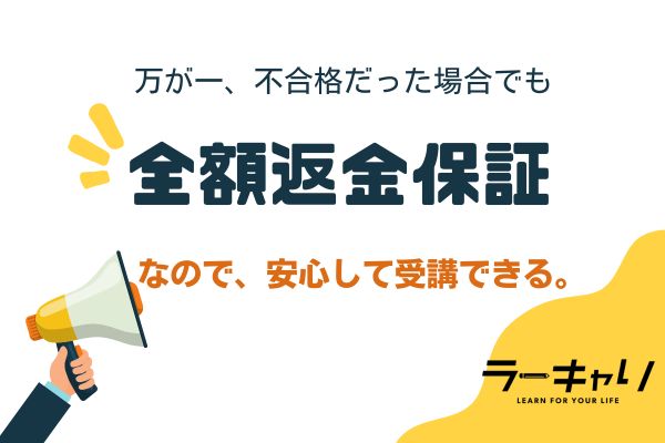万が一不合格となっても、全額返金保証で安心して受講ができます!!